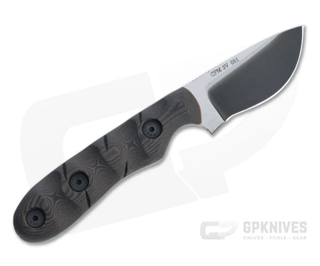 Blade: American CPM 3V offers toughness and performance in a classic drop point profile with a high hollow grind and wide recurve edge, perfectly suited to skinning tasks as well as daily utility. Spine jimping gives control for fine work, while the jimped guard and deep choil provides security in use. The two-tone Specter blade finish lends style to this utilitarian blade.