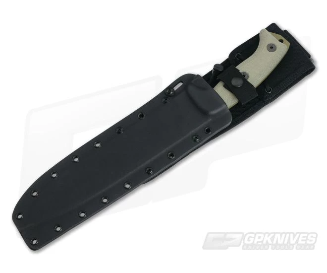 The ESEE Junglas is a hybrid between a large knife and a machete delivering a versatile cutting tool for multiple environments. You get a robust construction with a full tang 1095 high carbon tool steel blade and canvas Micarta handle slabs for high level durability. The Junglas comes with a Dark Earth powder coated blade and carries via a secure molded Kydex sheath with nylon MOLLE back.