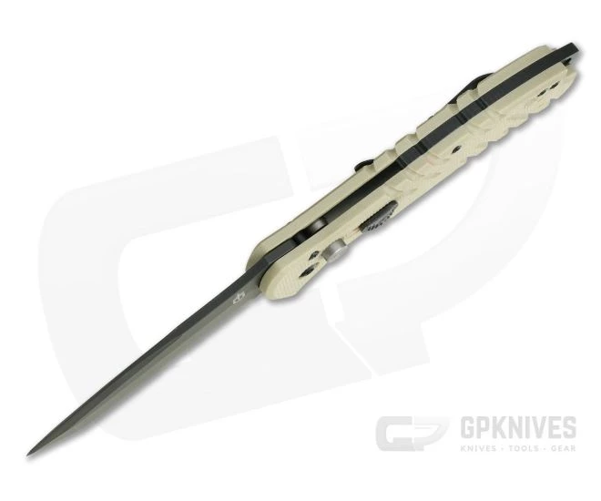 Handle:Â High traction Desert Tan G10 has milled grooves for even more grip in the hand. The G10 is mounted to inset, stainless steel liners which house the coil spring and rock-solid plunge lock mechanism. A slide safety adds additional security, arresting the lock in both open and closed positions. Slide the safety to ‘red’ and you are ready for operation. The Propel is rounded out with a steel backspacer with pointed pommel end that can be used as a glass breaker or impact tool.