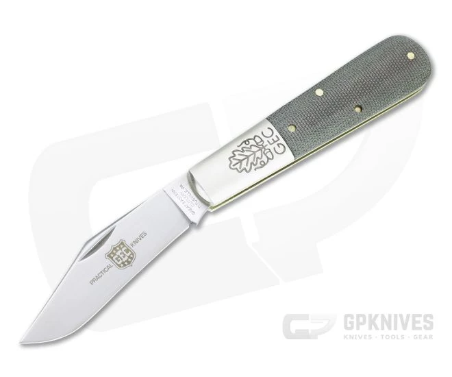 Blade: The large 440C stainless clip point blade opens with a snappy half stop via a classic nail nick and has a full flat grind for optimal performance. The blade has a GEC shield and “Practical Knives” etched on the front.