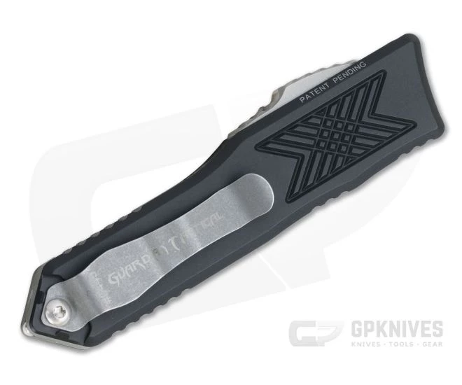 The Guardian Tactical GTX-025 is a fast, smooth, compact, double action out-the-front automatic that features premium materials and an innovative automatic mechanism that makes it a perfect daily carry choice. A patented steel thumb slide base, ceramic bearings and floating blade construction give the GTX-025 a smooth and reliable operation and rock solid feel while the hole milled blade fullers reduce the felt recoil in deployment. An under 2.5 ounce carry weight and compact size help the GTX-025 disappear in your pocket until you are ready to use it. This version comes with a single edge, stonewashed Elmax blade and black anodized aluminum handle.