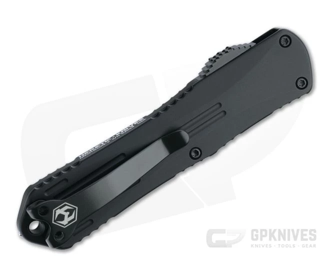 The Manticore-E is a mid-size, double action, out-the-front, automatic and the everyday carry solution in the Manticore line from Heretic Knives. Retaining the same countered, 3D machined, aircraft grade aluminum handles and traction scallops, the Manticore-E offers a secure and comfortable grip with fast, smooth, double-action operation and a high performance Elmax blade. This version comes with a two-tone black Cerakote coated recurve blade, black anodized handles and black hardware.