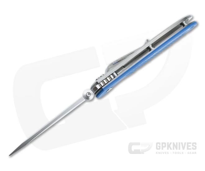 The Firetac is a slim, sleek and capable “every day tactical” folder that Rick Hinderer developed over a decade ago and is now being released as a full production model. The Firetac is like a more streamlined version of the XM-18 3.5″. Sporting slimmer design with the same robust titanium frame lock construction, now with a hardened steel lock face insert, and high traction G10 front scale. This version comes with a stonewashed 20CV Spanto blade, matching titanium frame and blue G10 scale.