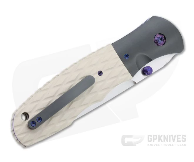 John W. Smith is a tactical folding knife legend. His pieces can be hard to come by, and when they do come around they go fast! The reason: these custom pieces are a part of knife making history. Simple, refined, and flawlessly executed, a John W. Smith custom is a jewel in any collection. Mr. Smith developed the Nexus design for his personal use and now offers it to us! This piece has a hand rubbed satin, CPM-S45VN blade, zirconium bolsters and clip, jeweled and anodized titanium liners with matching hardware and Ivory White Westinghouse paper Micarta with matching file worked back spacer.