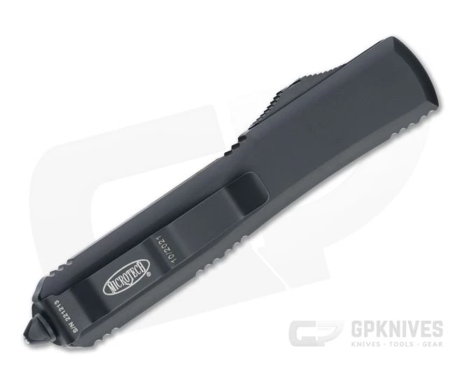 The Ultratech double action out-the-front automatic from Microtech sets the standard for the category. With a sleek durable design, precision American made construction and premium materials, the Ultratech is a perfect everyday carry companion. This Tactical variant has a black contoured aluminum handle with matching hardware and two-tone Cerakote coated M390 plain edge Bayonet blade.