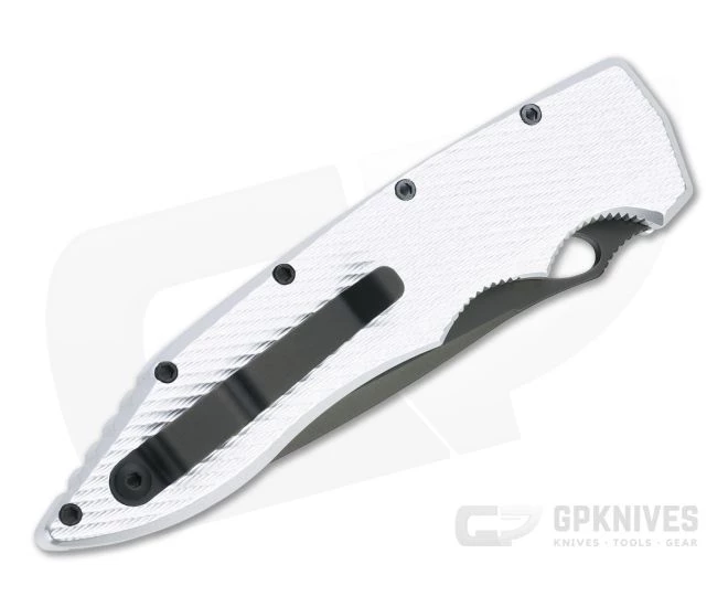 Handle: Over five inches of aircraft grade aluminum provides real estate for the largest of hands with dual jimped finger grooves and textured 3D milling giving traction for a secure grip in any situation. The knife retains lightweight durability despite the large size and comes with a rock solid button lock for secure operation. Black stainless Torx hardware completes the construction.