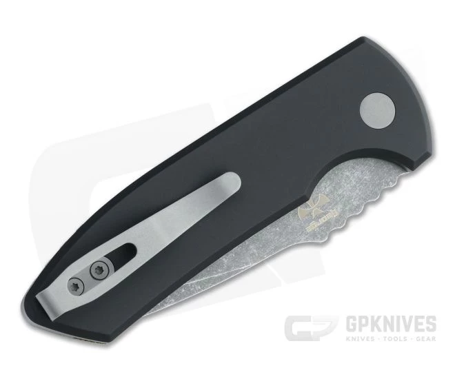 The Protech Knives SBR (Short Bladed Rockeye) is a utilitarian, compact, every-day-carry version of the Les George iconic Rockeye model, retaining the classic design in a smaller package. The SBR has the same American innovations as the Rockeye, featuring modern materials, high-tech manufacturing, advanced coil spring mechanism, and quality American production. This GPKnives Exclusive version has an acid washed S35VN blade, smooth black aluminum frame and Green canvas Micarta top.