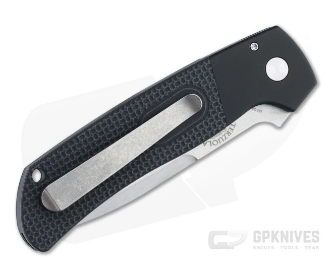 The Protech Terzuola ATCF Auto is a production automatic version of Bob Terzuola’s iconic Advanced Technology Combat Folder design. Working side by side with the Godfather himself, Protech has delivered a precision American manufactured automatic ATCF with custom appeal. The Terzuola ATCF introduces the superb Magnacut stainless steel to the Protech line and features button and handle inlays, a Terzuola style milled titanium clip and logo etching. This version comes with a stonewashed blade, black frame with textured black G10 inlays and pearl inlay button.