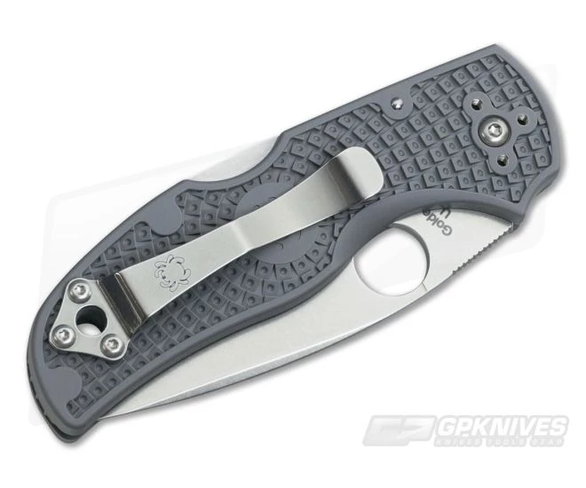 Handle:Â Fiberglass reinforced nylon is a very tough, durable material. It makes the overall knife a lightweight for a reason. It won’t weigh you down nor let you down. This one has Spyderco’s latest coloring of Stone Gray with their Trademarked Bi-Directional texturing for a sure grip. The Native 5 has a lock back mechanism. It’s very strong, easy to use and workable by righties and lefties.Â
