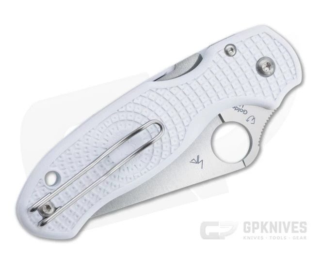 Eric and Sal Glesser designed the Spyderco Para 3 to meet demand for a more compact, sub-3” blade version of the popular USA-made ParaMilitary 2. A great size for EDC in the field or office, this compression lock folder is small but mighty, able to handle your daily cutting tasks with ease. The Lightweight version comes with contoured, high traction Bi-Directional textured FRN handles and a deep carry wire pocket clip. Our GPKNIVES Exclusive comes with high performance, satin-finished CPM REX 45 blade steel, easily customizable White FRN handles and silver hardware/clip.