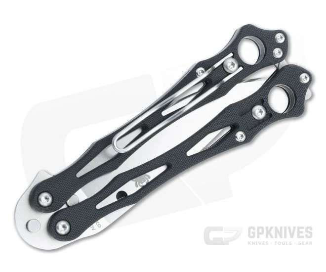 The Spyderco SmallFly put a new spin on the classic balisong or Filipino butterfly knife. Now it is back and better than ever in the SmallFly 2. Handle construction is similar with skeletonized stainless liners and black G10 handle scales in a tradition-bucking Spyderco design that is both comfortable and secure. The SmallFly 2 is outfitted with a more utilitarian drop point blade of satin finished S30V with a full height flat grind making this a great user knife while still offering the enjoyment of bali operation.