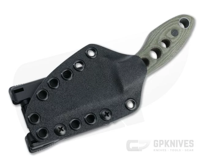 A hybrid of his Pocket Bowie and Hydra models, the Tom Krein custom Tusk is a compact, daily carry fixed blade Bowie that delivers a discreet carry with powerful performance. The Tusk features Krein’s signature ergonomic handle and performance oriented hollow grind and is ideal for everyday utility and defense. This version comes with an acid washed CTS-XHP blade and green linen Micarta handle scales over red liners with speed hole milling and black Micarta pins.