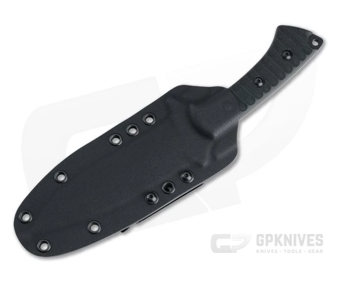 Blade: The 5/32” thick carbon steel blade comes with a durable, non-reflective black Cerakote coating for enhanced corrosion resistance and discreet use. Dual hollow grinds make the blade fast and well-balanced with powerful performance in piercing and slicing with a single plain cutting edge and false edge spine. This purpose built tool was not designed for prying or digging. The double guard and spine jimping provide safety in heavy use.